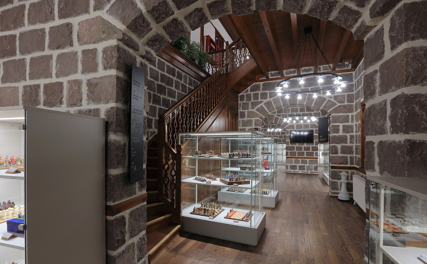 1008 m2'lik alan içerisinde 110 ülkeden 723 satranç takımının 4 ana tema üzerinde sergilendiği satranç müzesinde kültürel çağrışımlarla farklı bir yolculuğa çıkabilirsiniz.
