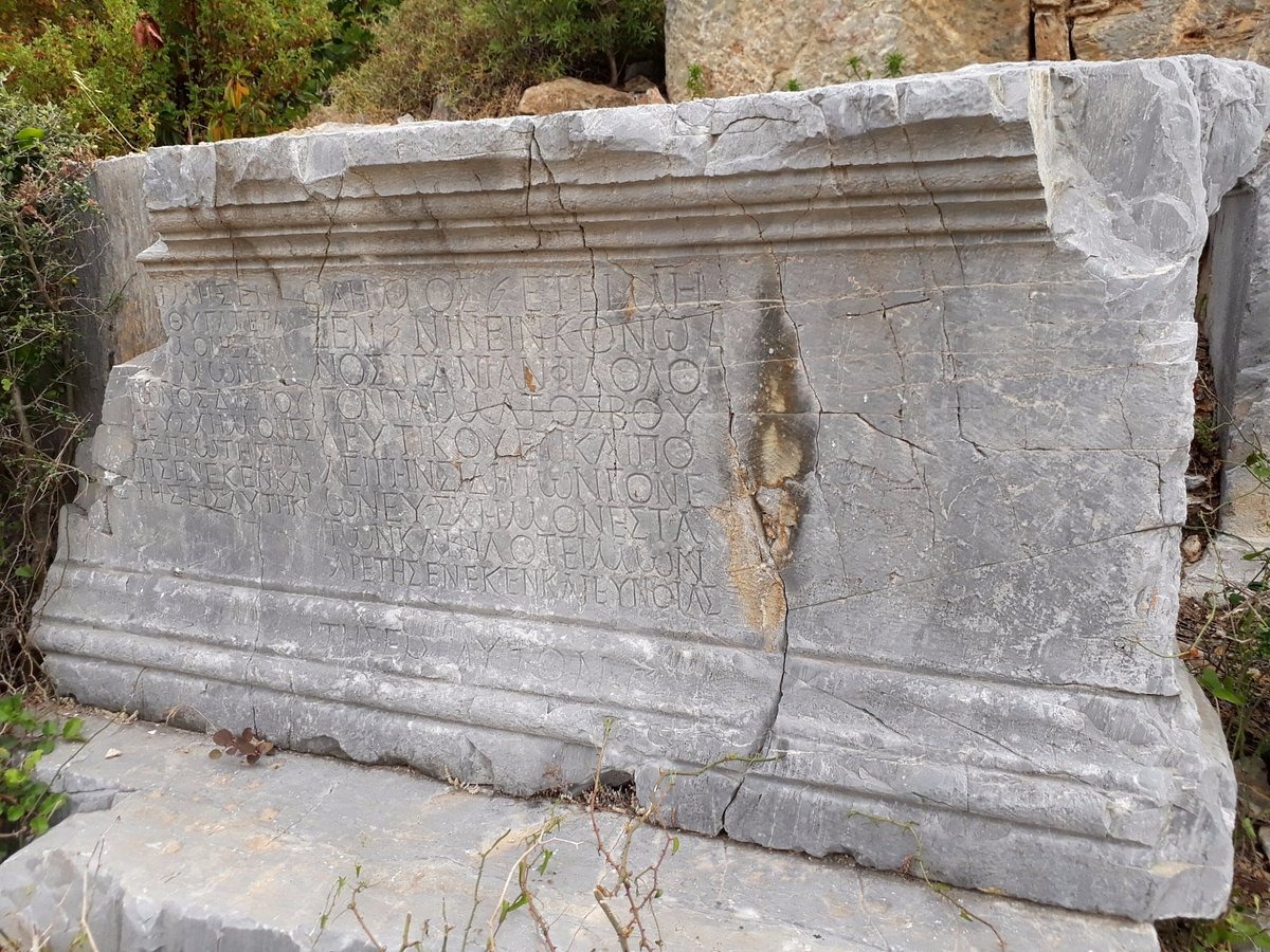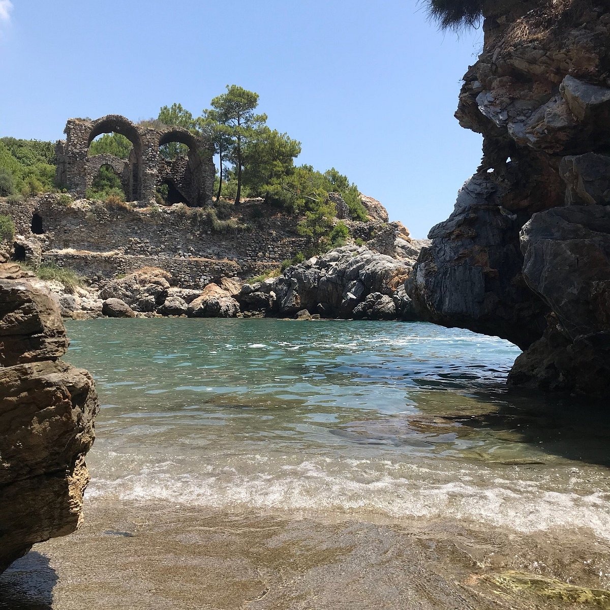 🔸Antik kentin deniz tarafında kalan kalıntıları arasında, yakınında bulunan bir yazıttan ötürü Trajan’a adanmış bir de tapınak bulunmaktadır. Tapınak günümüze sadece Stylobat düzeyinde kalabilmiştir.