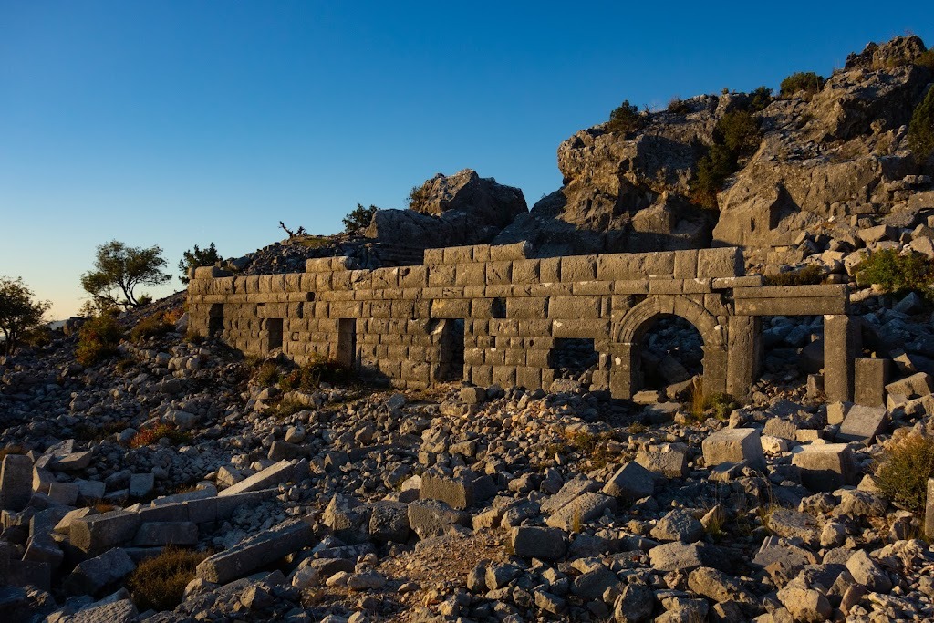 🔸Antik yerleşim modern yerleşimin bir kilometre doğusunda bulunuyor. Yerleşmenin girişinde bulunan bekçi kulübesinden itibaren başlayan yaklaşık bin metre uzunluğundaki patika, kentin nekropolünün içinden geçerek sizi antik yerleşimin merkezine ulaştırır.